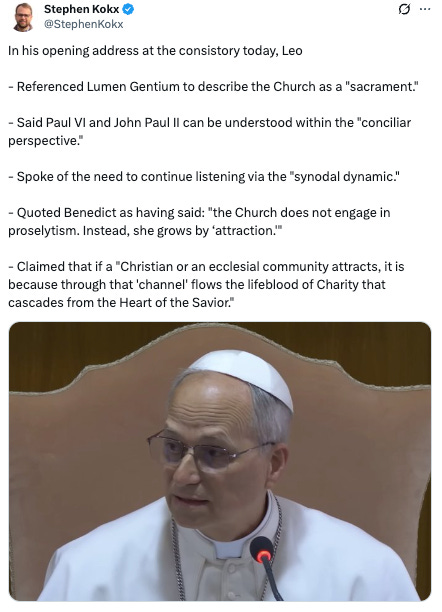 Anyone who hoped that Leo would become “his own man” and re-orient, even in the slightest, the direction of the Conciliar Church at the much anticipated consistory this week has just received a rude wake up call.