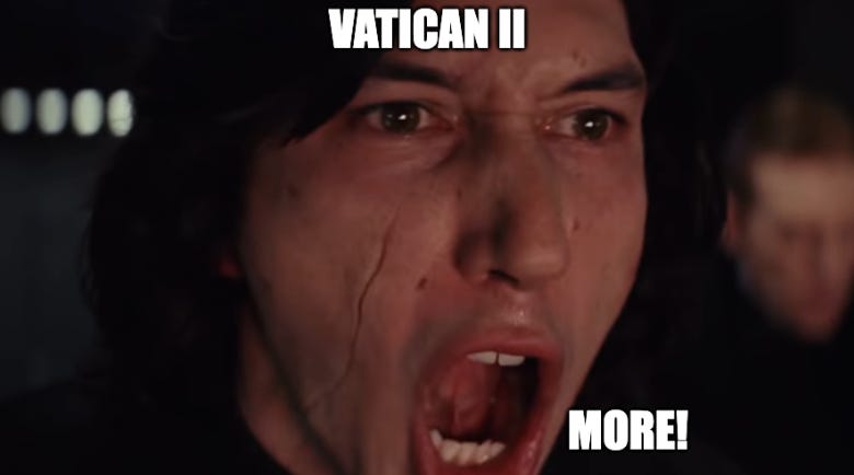 To get us hyped on Vatican 2, I wonder if Louie Verrechio’s previous catechetical series on “Harvesting the Fruits of V2” will be used or his current series “Vatican 2 Revisited”??