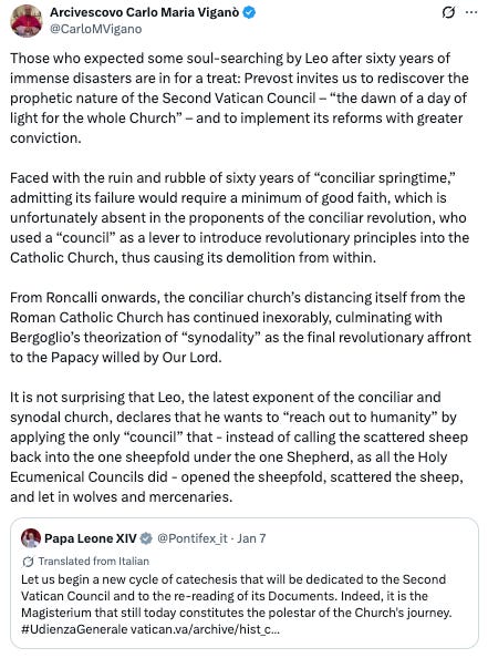 Archbishop Viganò published the following post on X Thursday morning. It is an excellent summation of the situation at hand: