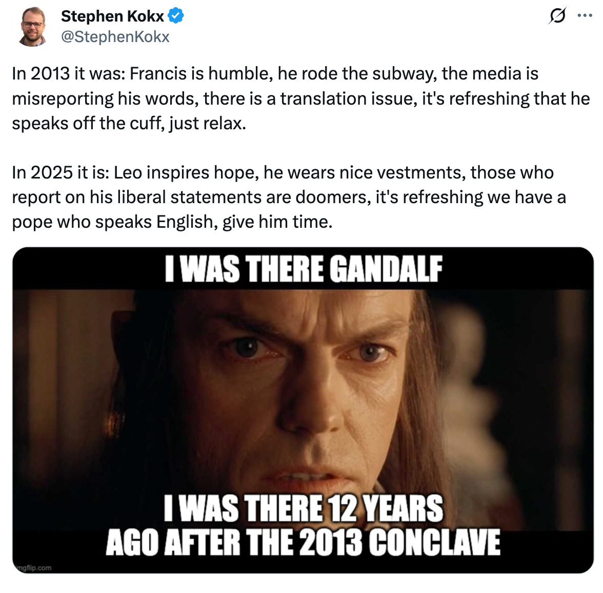 Still, it should be clear to all by now that we at Kokx News were right all along and that we are entirely justified when we say: we told you so. Indeed, we published the following remark in a blog post less than 72 hours after the conclave: