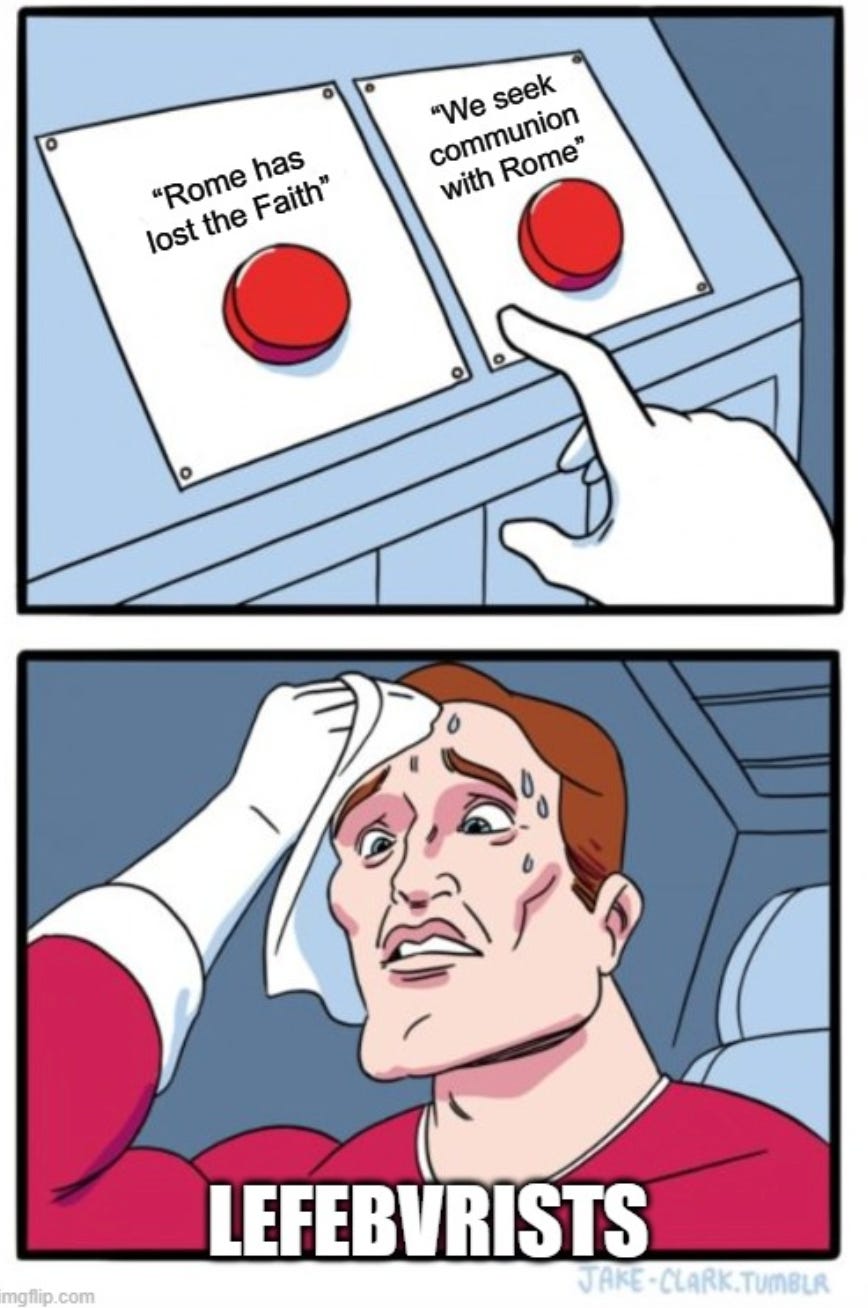 Another possibility is that Trads are being told to get on Leo’s good side in order show him they aren’t the “angry rad trads” they are made out to be. “Better be on our best behavior if we want to have Leo give us permission to say the Latin Mass again.”